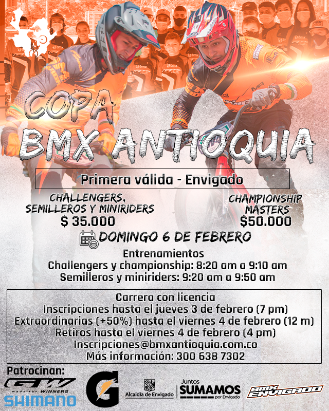 Ahora, si bien el siguiente evento de esta copa que tendrá cinco paradas, nos congregará hasta dentro de dos meses, la actividad de la biela corta no cesará, pues este domingo 6 de febrero, la Copa BMX Antioquia se realizará en la pista Fernando ‘Loquillo’ Giraldo de Envigado, donde se espera una participación masiva, dado que este encuentro servirá de antesala a la Copa Nacional de Villavicencio que se llevará a cabo del 18 al 20 de febrero.
