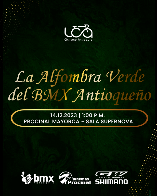 La sala Supernova de Procinal Mayorca, será el lugar encargado de acogernos este jueves 14 de diciembre desde la 1:00 p.m., en una ceremonia donde reviviremos lo mejor del 2023 y de paso, nos pondremos de pie para celebrar los triunfos del bicicrós antioqueño por el mundo.