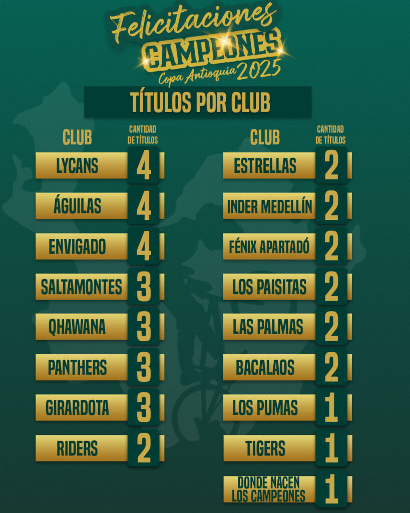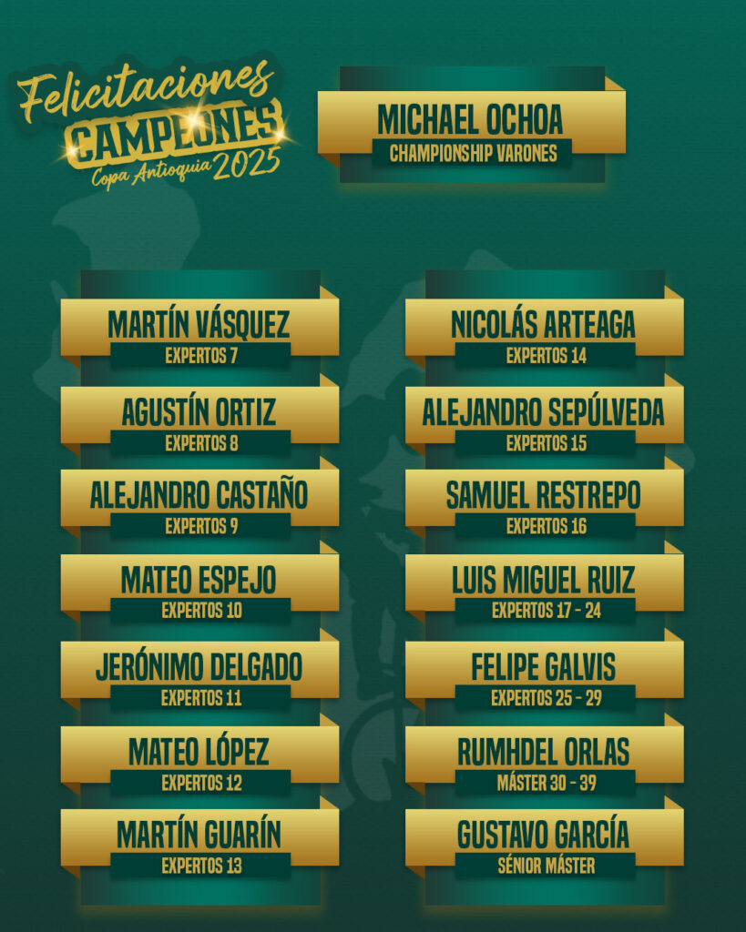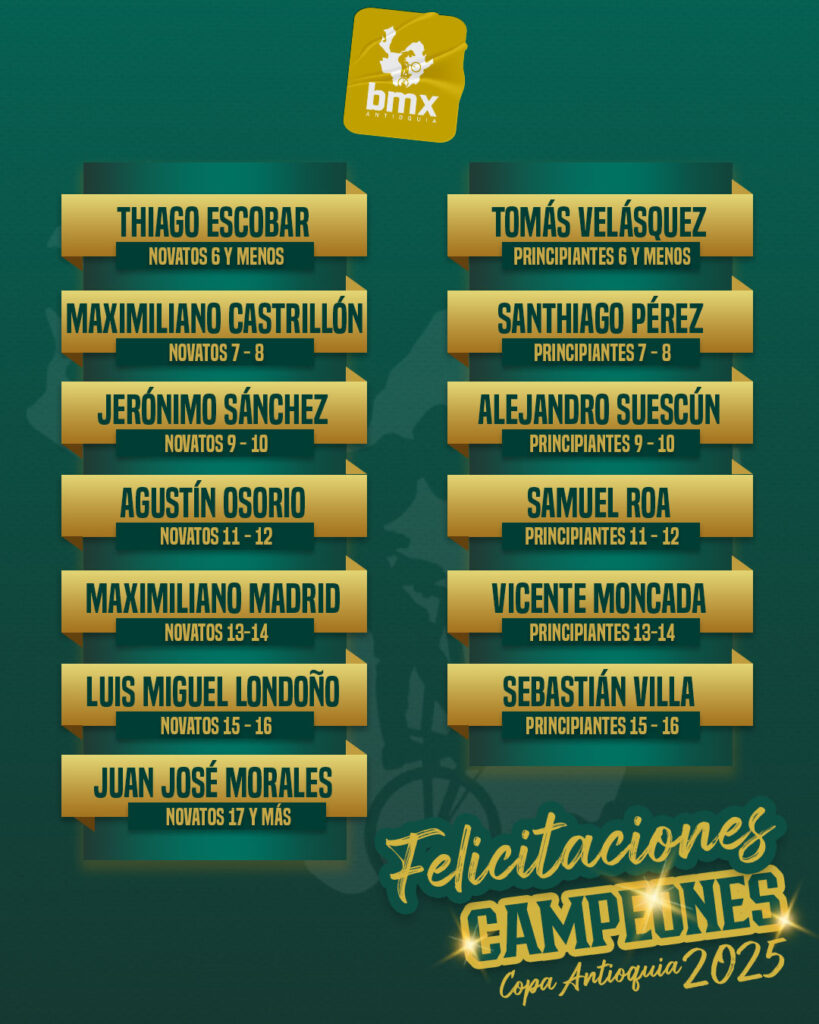 Felicitaciones a todos los campeones, a los entrenadores, familias y toda la comunidad del bmx antioqueño que hizo que esta Copa Antioquia 2025 fuera un encuentro deportivo maravilloso y del más alto nivel. Nos espera un 2026 sensacional.